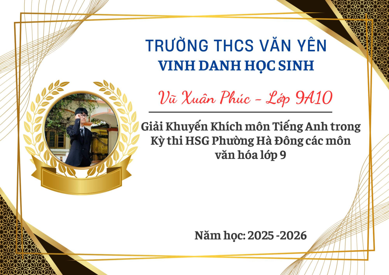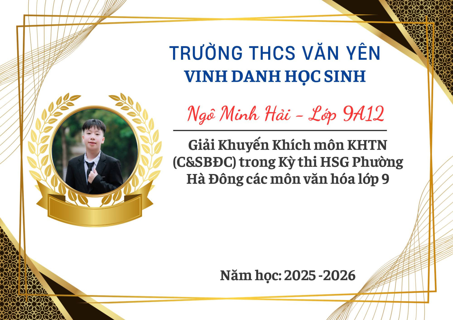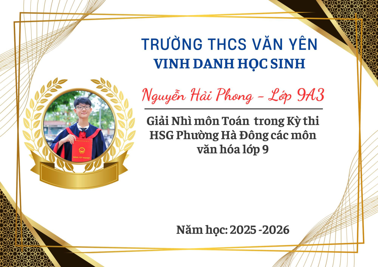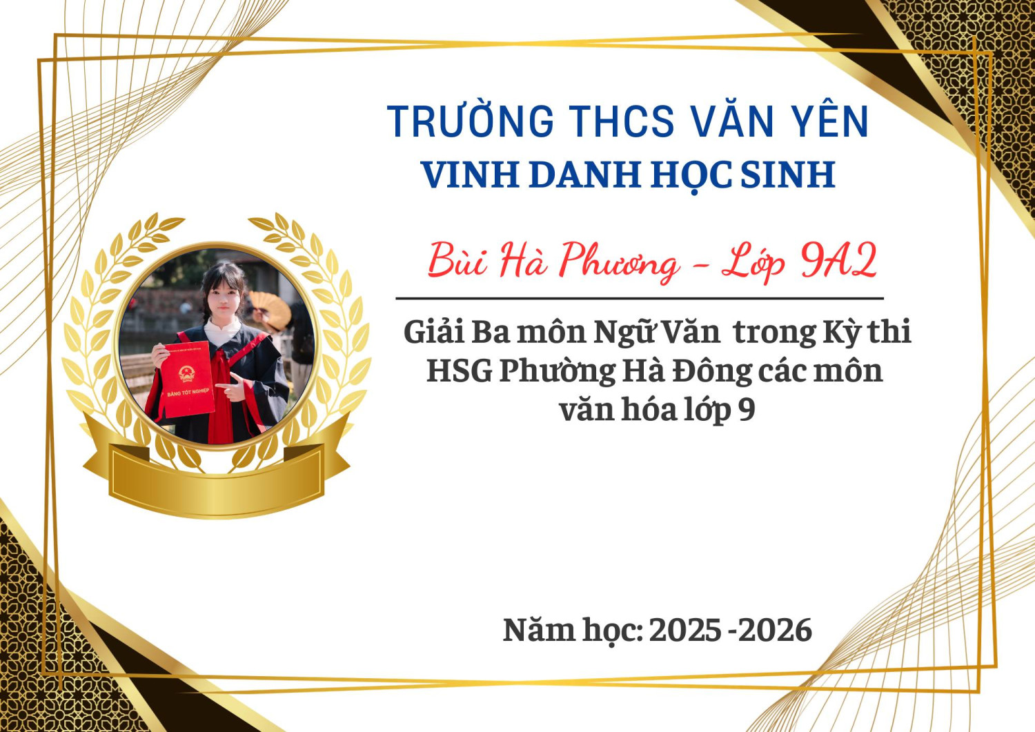 VINH DANH HỌC SINH GIỎI CÁC MÔN VĂN HÓA CẤP PHƯỜNG Năm học 2025 – 2026