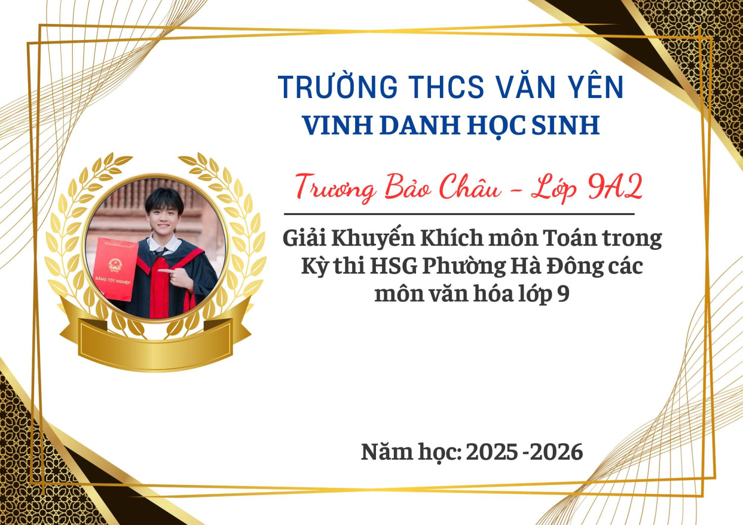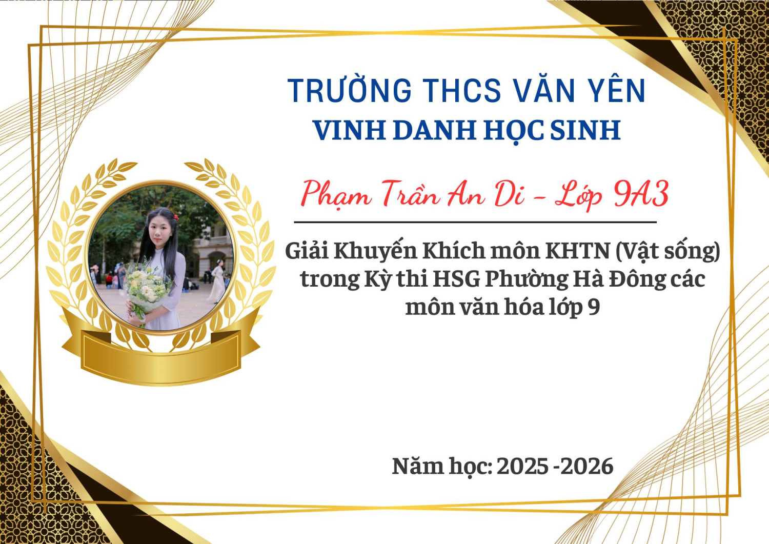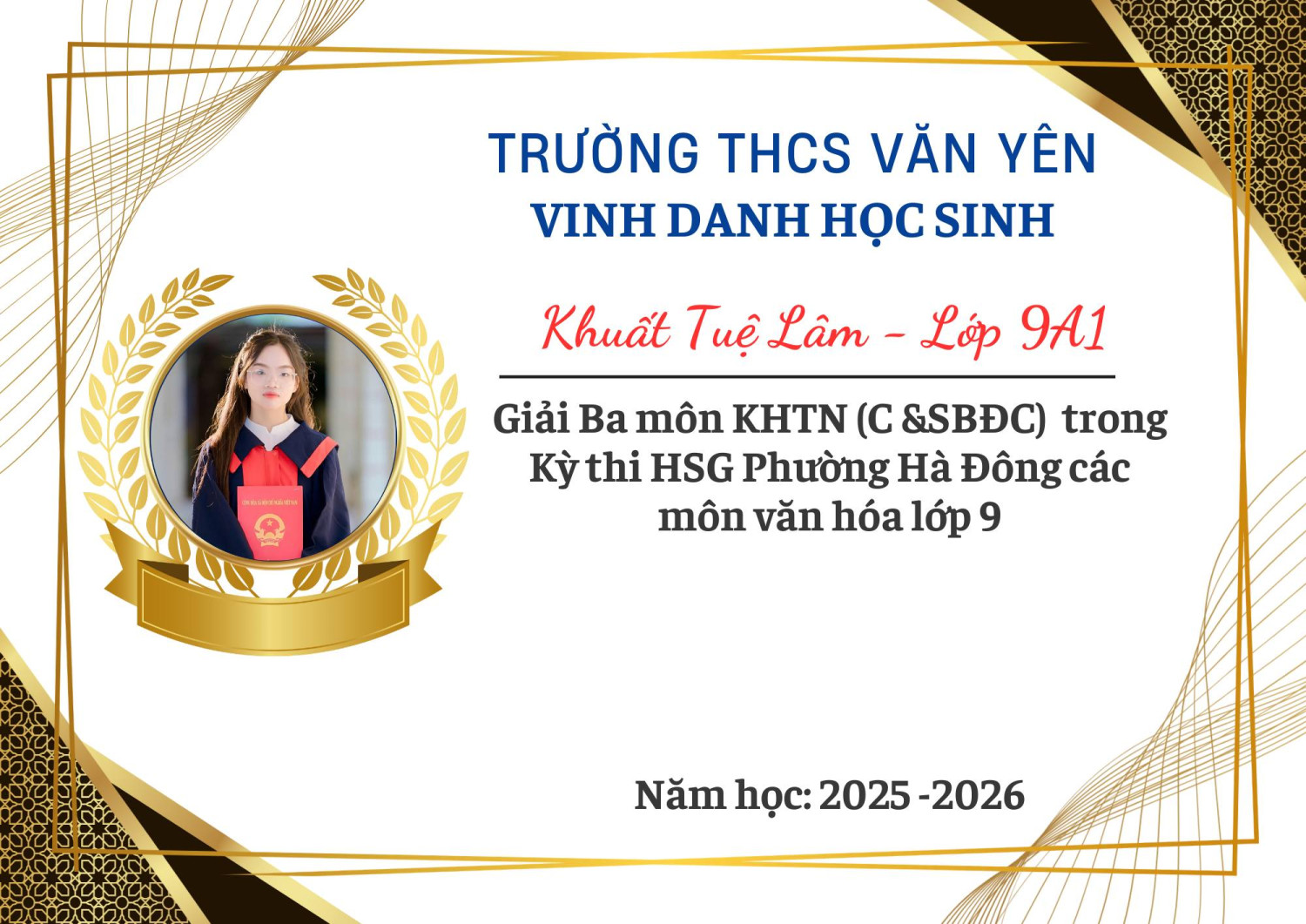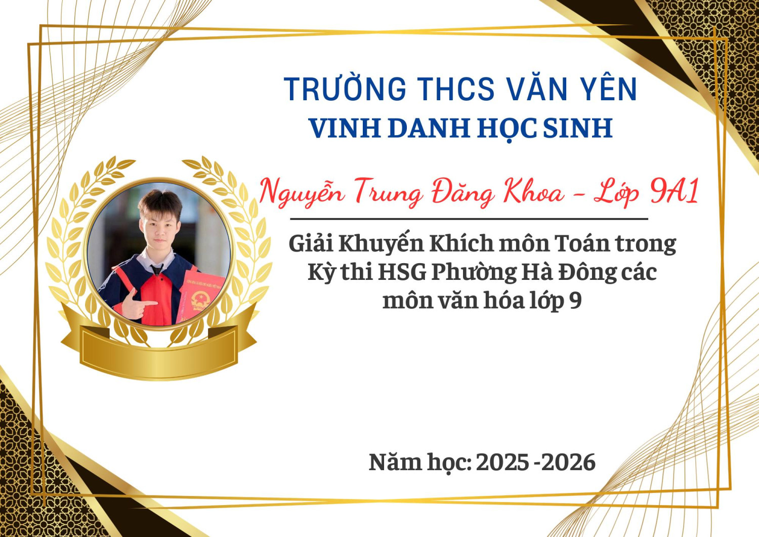 VINH DANH HỌC SINH GIỎI CÁC MÔN VĂN HÓA CẤP PHƯỜNG Năm học 2025 – 2026