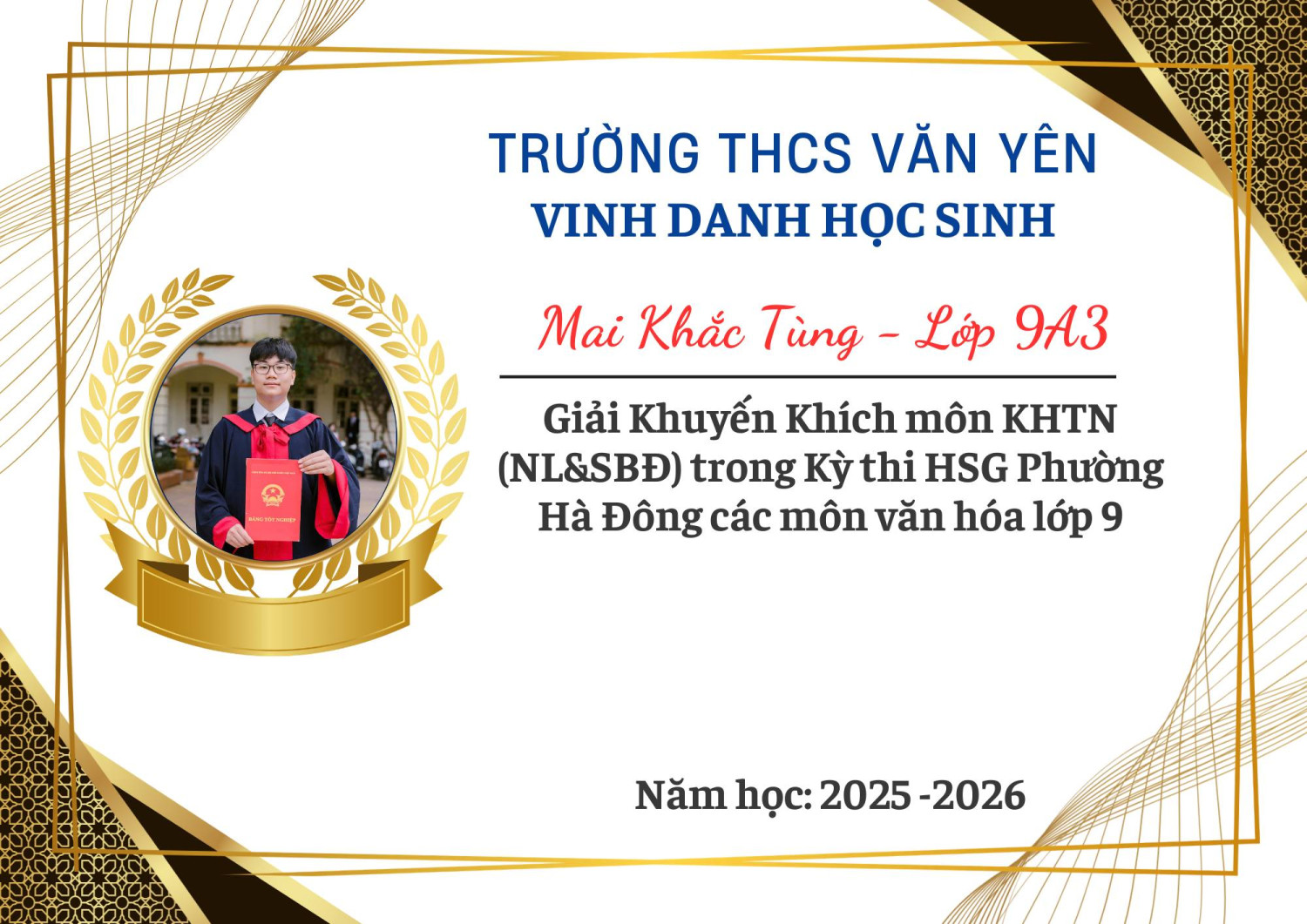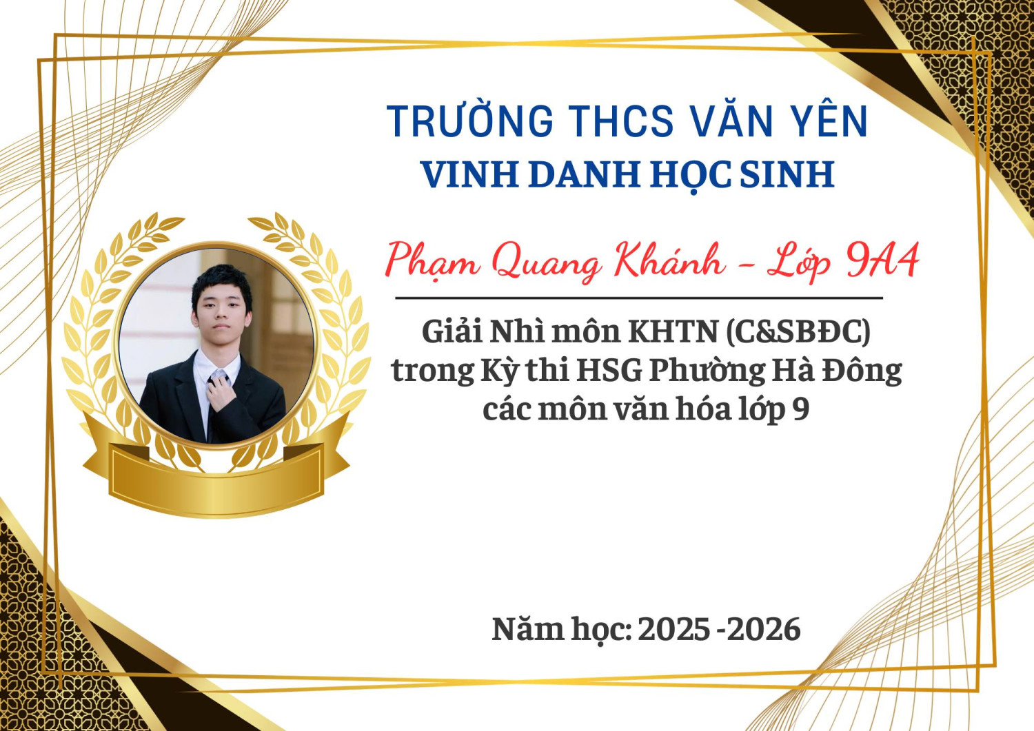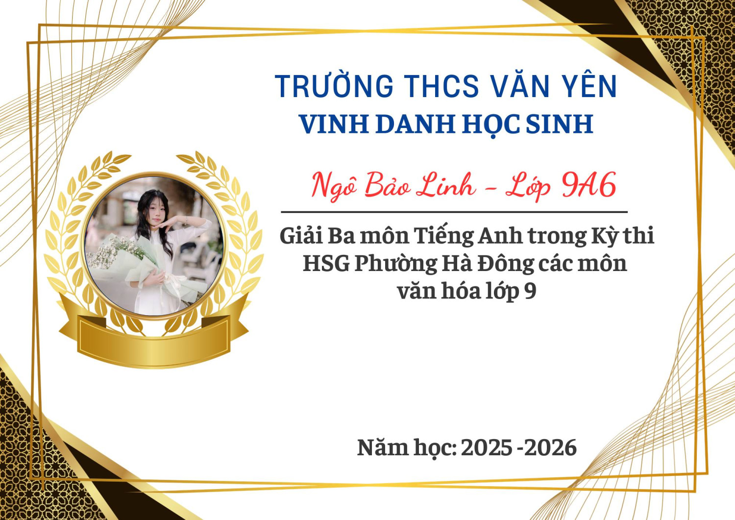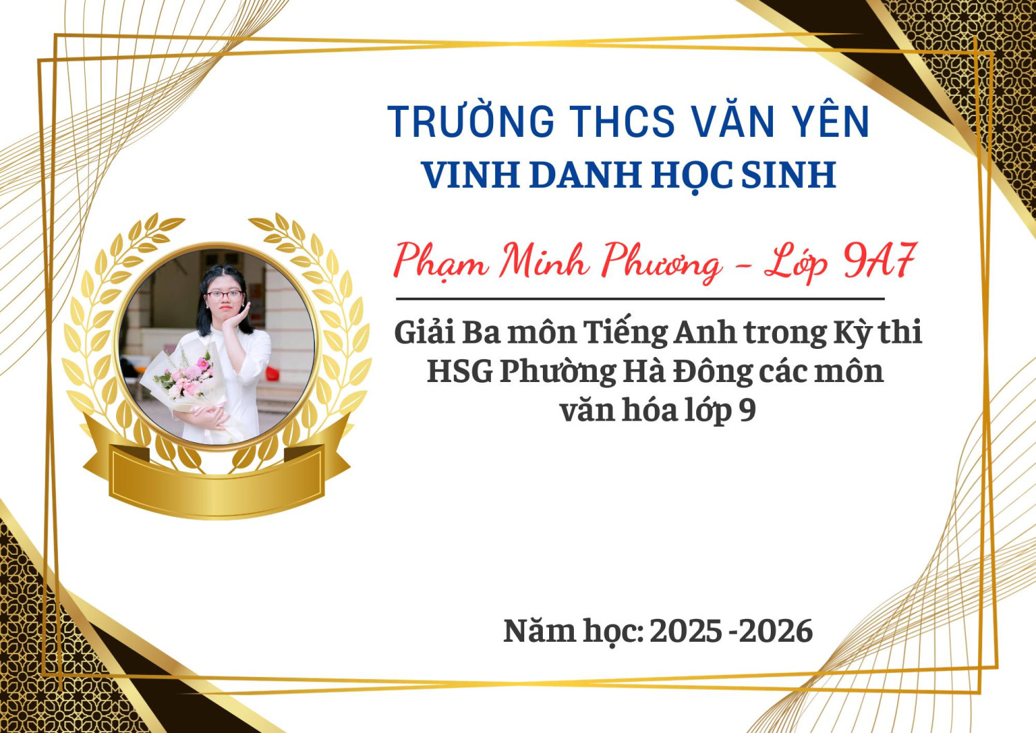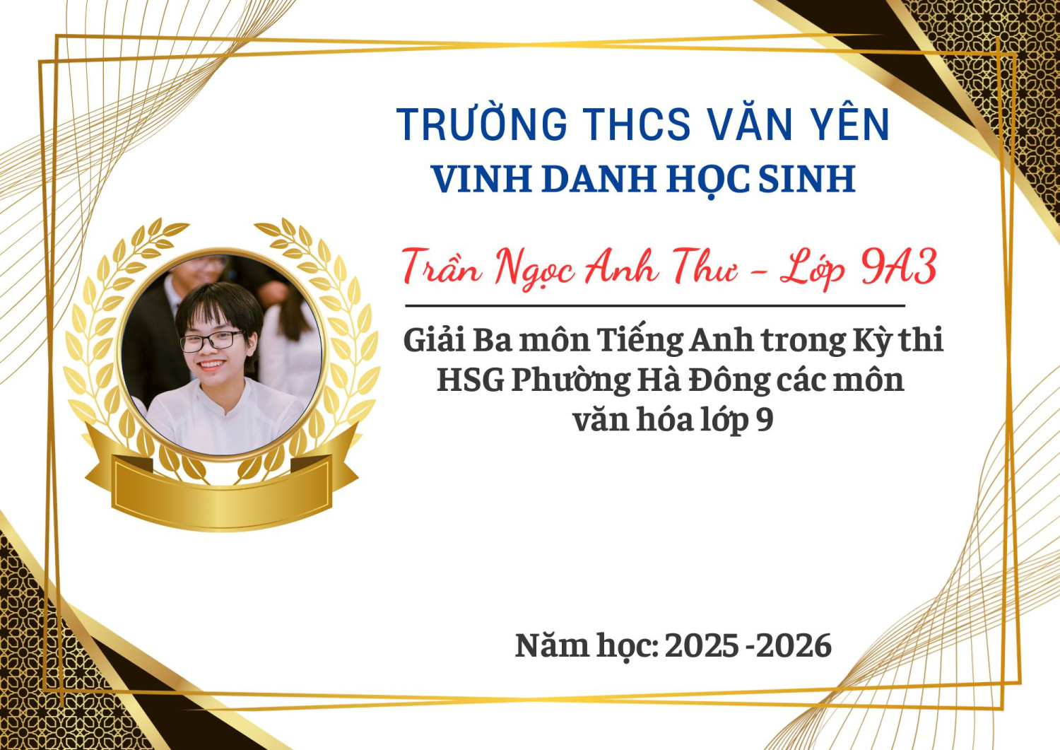 VINH DANH HỌC SINH GIỎI CÁC MÔN VĂN HÓA CẤP PHƯỜNG Năm học 2025 – 2026