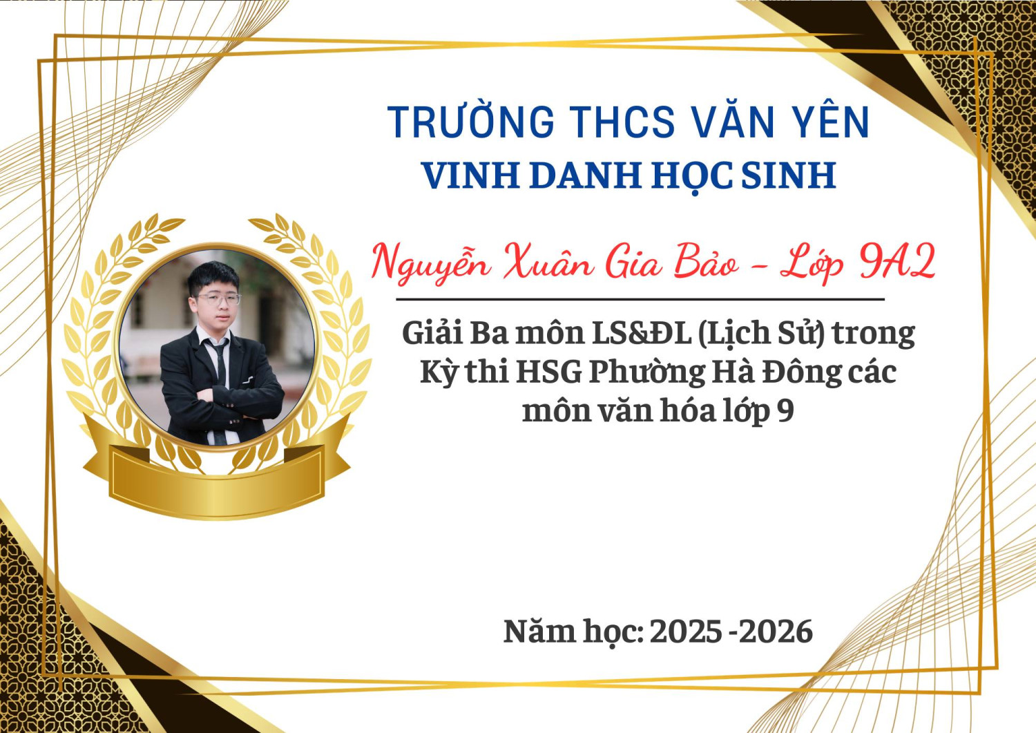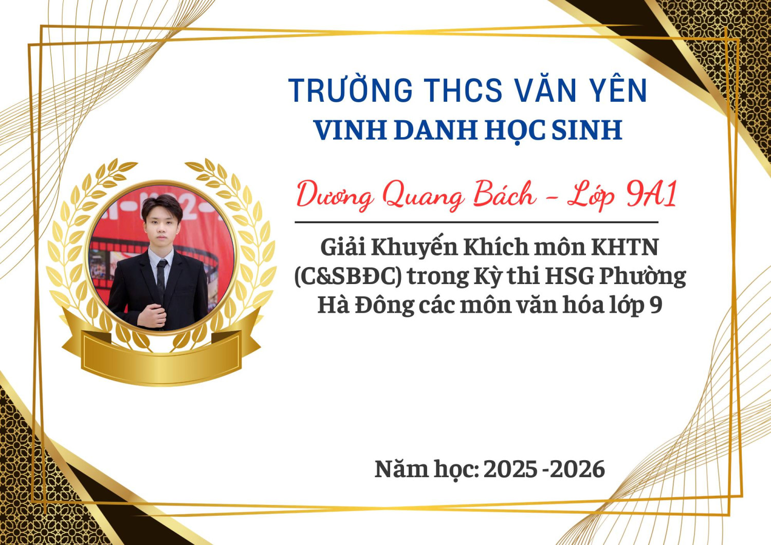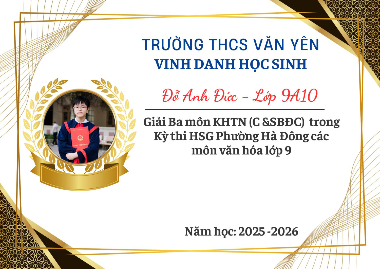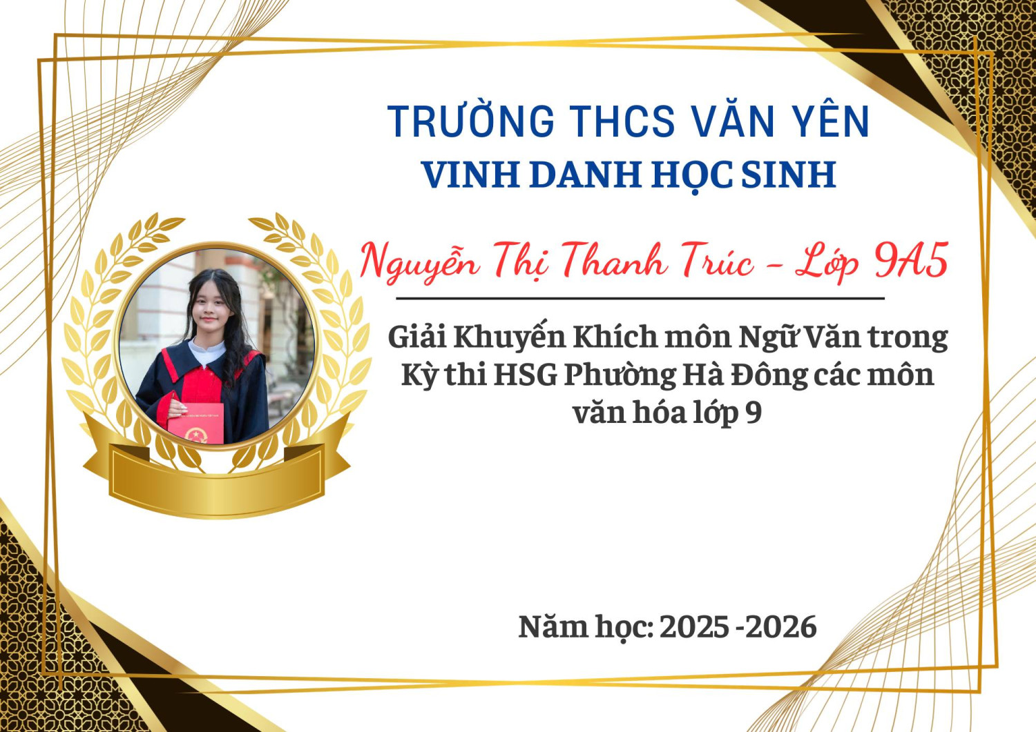 VINH DANH HỌC SINH GIỎI CÁC MÔN VĂN HÓA CẤP PHƯỜNG Năm học 2025 – 2026