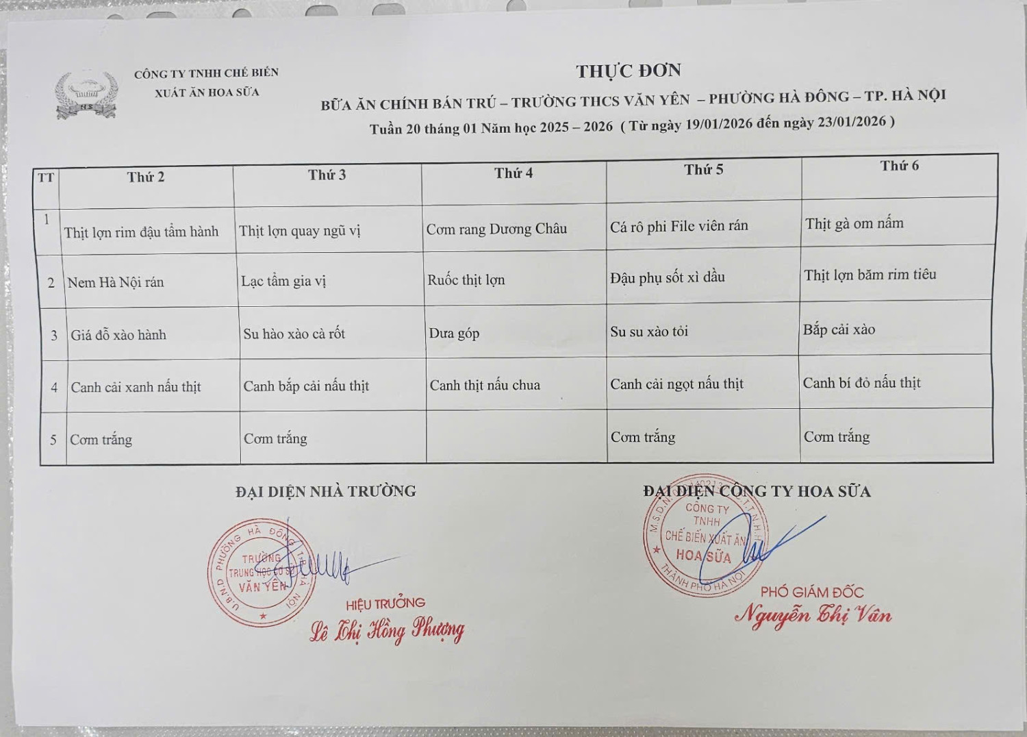 Thực đơn tuần 23(từ ngày 23/2/2026 đến ngày 28/2/2026)