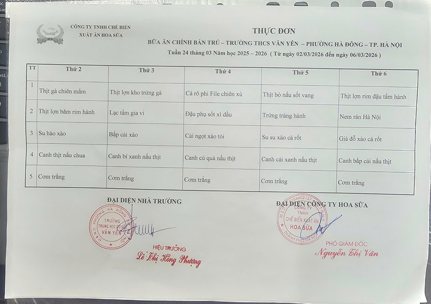Thực đơn tuần 24(từ ngày 2/3/2026 đến ngày 7/3/2026)